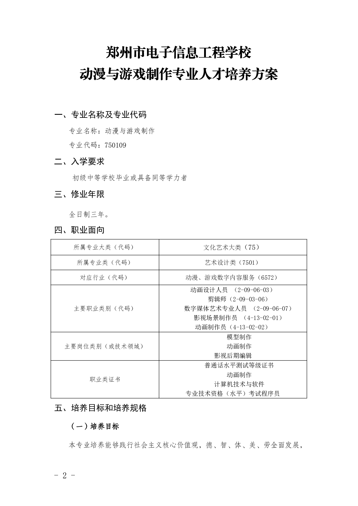 动漫游戏制作专业人才培养方案(2025)