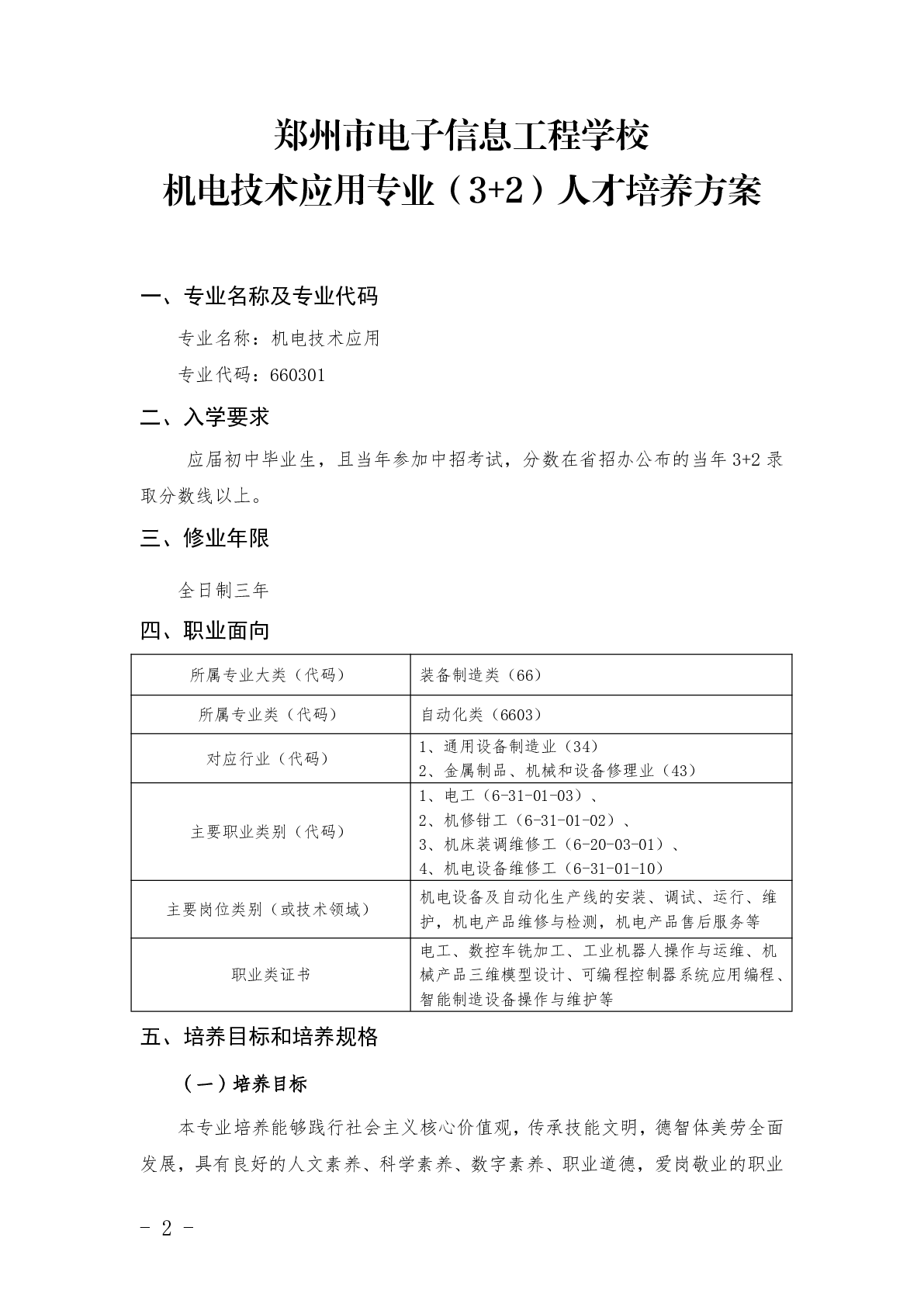 机电技术应用(3+2)人才培养方案(2025)