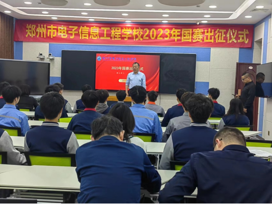 为积极响应习近平总书记对职业教育工作关于加快构建现代职业教育体系,培养更多高素质技术技能人才的重要指示,以积极饱满的精神状态迎接2023年国赛职业技能大赛,郑州市电子信息工程学校于2023年5月9日在务实楼二楼录播教室举行了2023年国赛出征仪式,李京辉校长、李向伟校长、余蓉校长以及各赛项辅导老师参加会议。